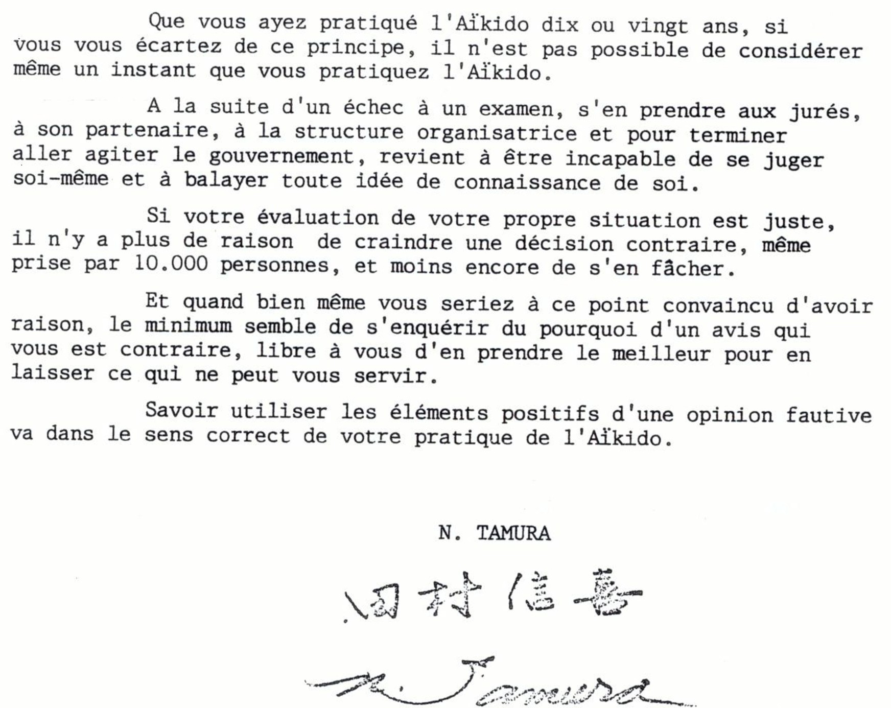 PETIT TEXTE de Maître Tamura datant de 2009 qui peut intéresser tout le monde :