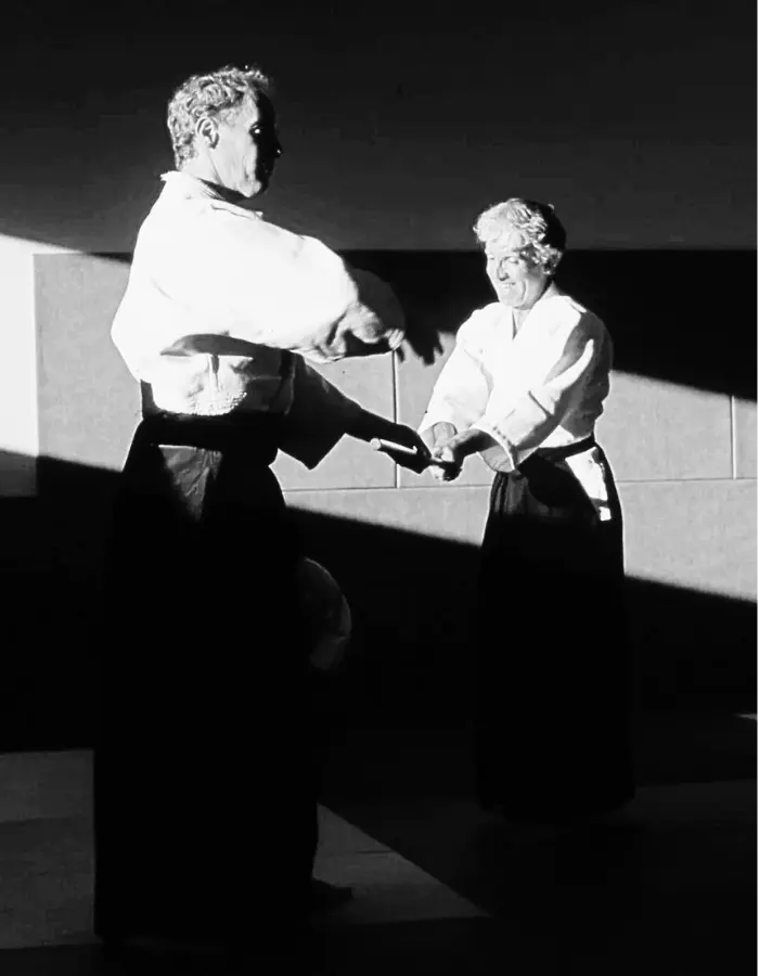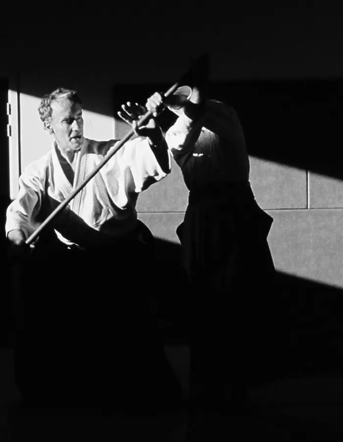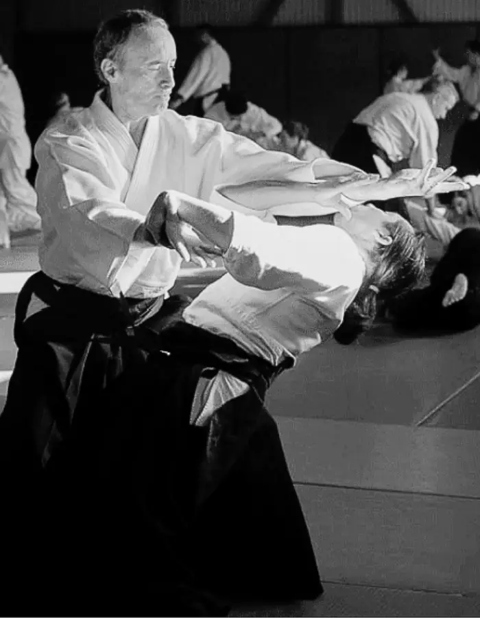 « On peut dire que l’Aïkido est plus facile pour les débutants que pour les pratiquants plus aguerris. Une des raisons, c’est que lorsque l’on progresse, on commence à mettre un hakama, puis une ceinture noire, puis bientôt on est 3è Dan. Tout cela renforce votre égo, et c’est ainsi que l’Aïkido devient plus difficile. L’Aïkido consiste à se nettoyer de tout cela, à éliminer cette poussière qui encombre et qui limite. C’est par ce nettoyage, ce travail d’élimination de votre égo que vous pouvez devenir plus libre.
